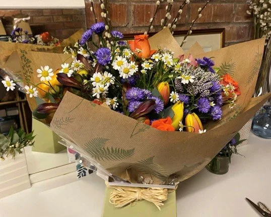 Prices start at… £40.00 for a bouquet, £25.00 for a wrap of flowers, £15.00 for a jam jar